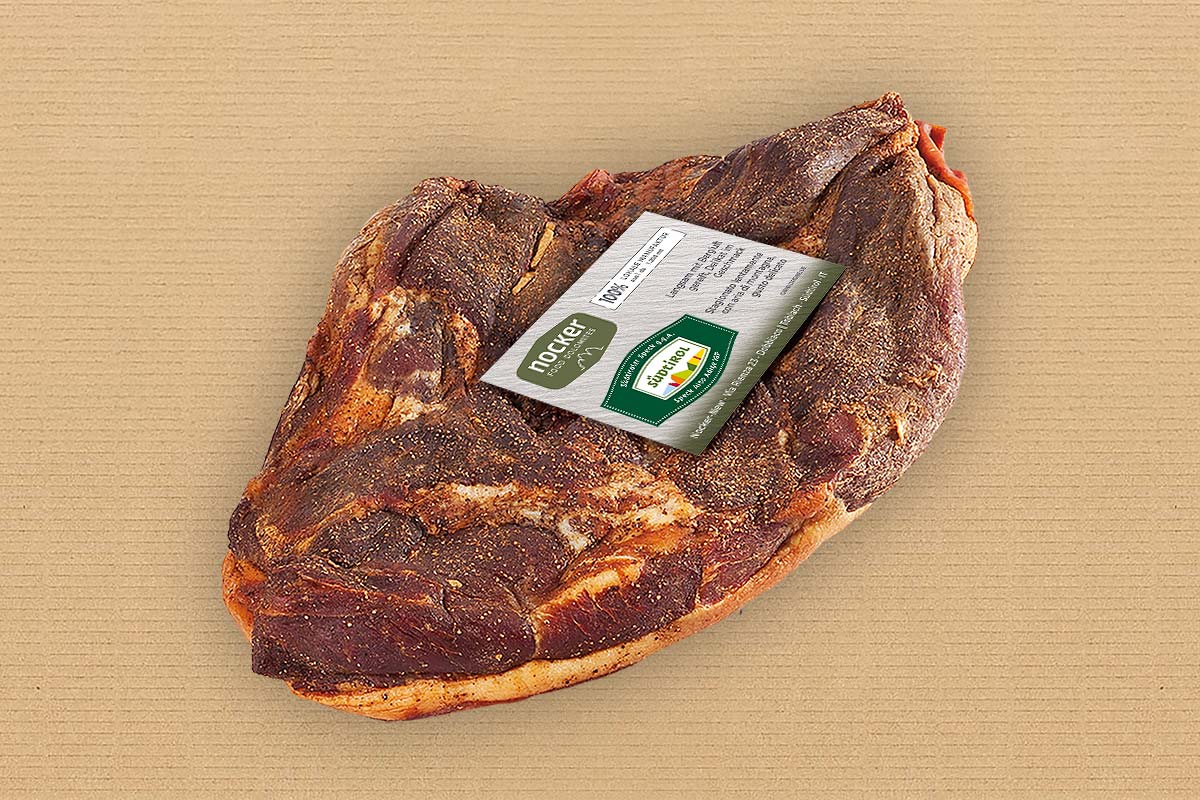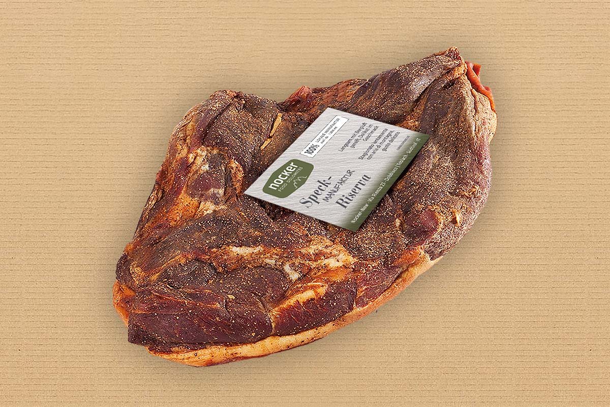 Denken wir zum Beispiel an einen Bauernhof oder eine Schutzhütte in den Bergen. Dort wird der Speck traditionell am Stück zum Selberschneiden serviert. Es ist der beliebte "Speck am Brettl". Zusammen mit einem Glas Rotwein und dem Schüttelbrot ergibt das die traditionelle Südtiroler Marende.
